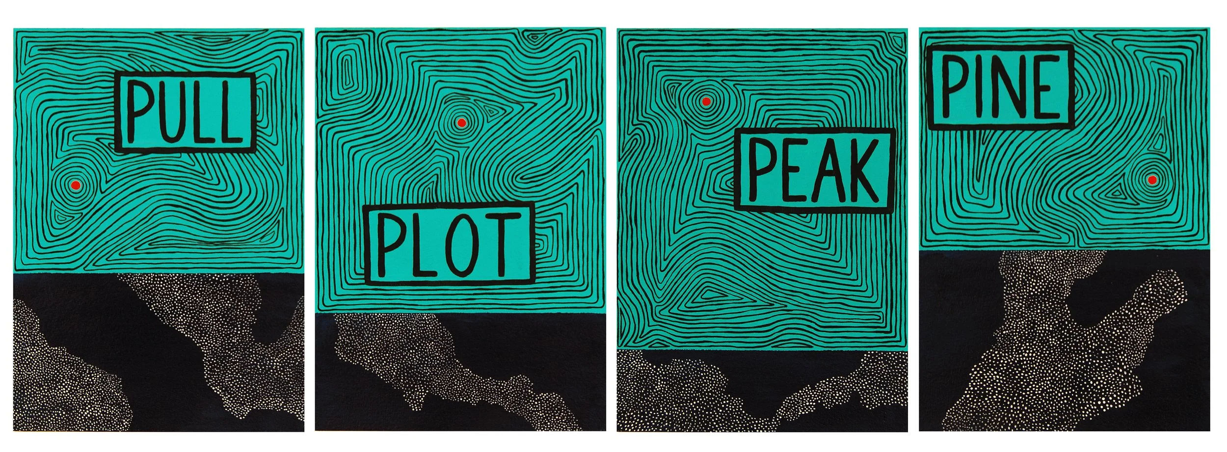 A Twist, A question 2011 acrylic on paper, 4 panels, each 15" x 11.25"