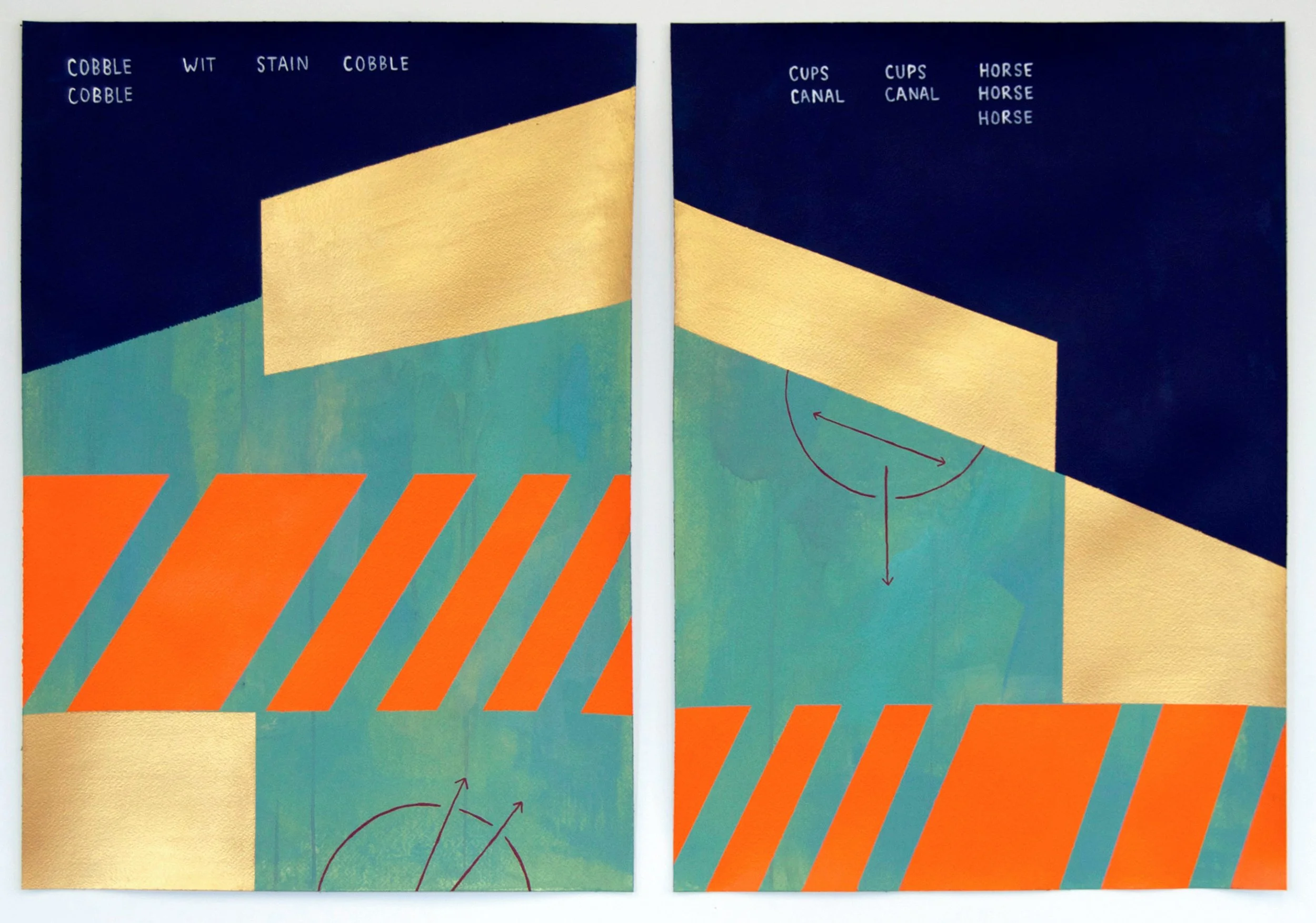 Comment Dit-On en Francais , 2010 acrylic on paper, diptych, 22" x 30" each
