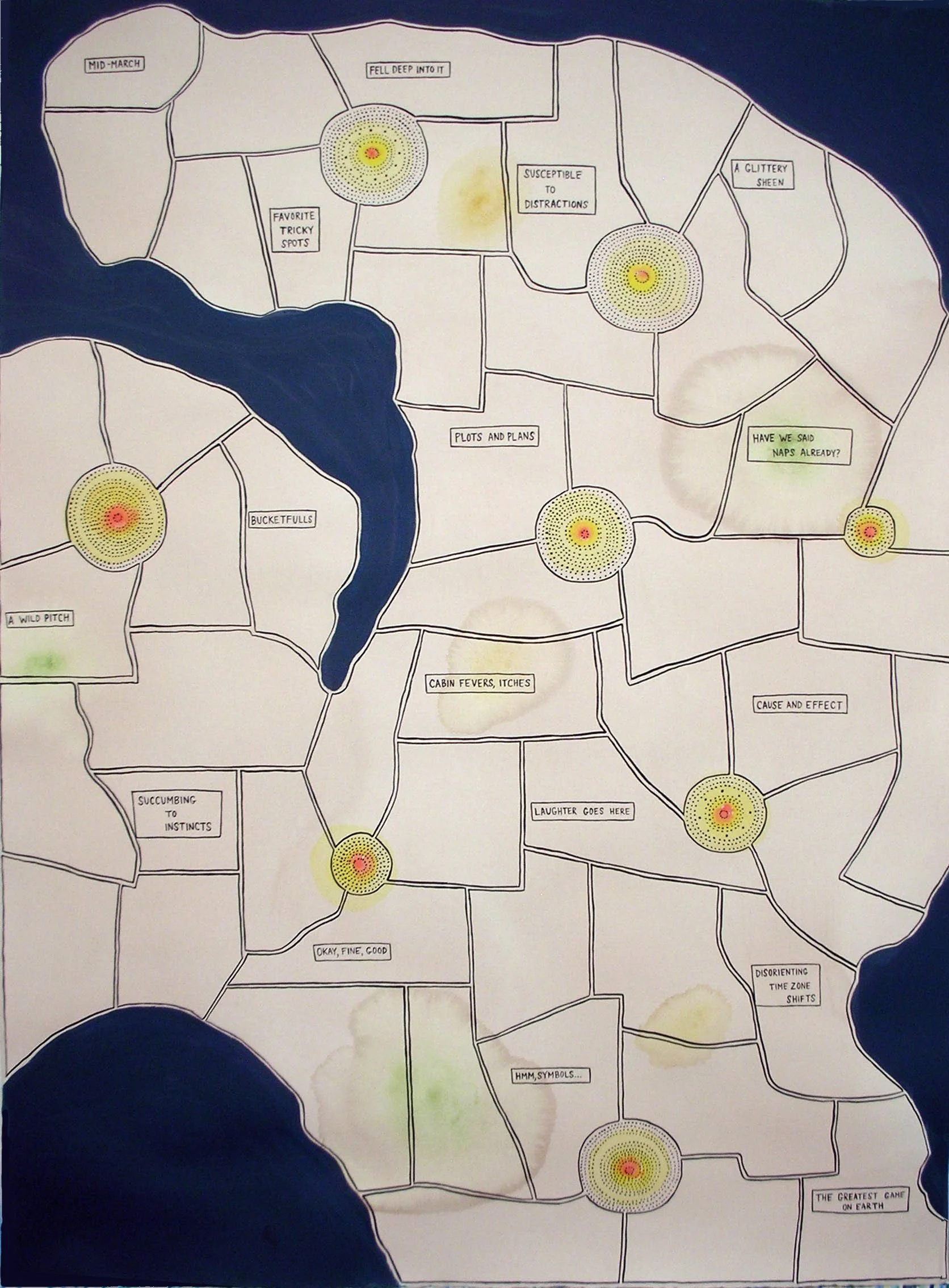 Fables, Destinies, Metaphors, 2008 acrylic on paper, 22" x 36"