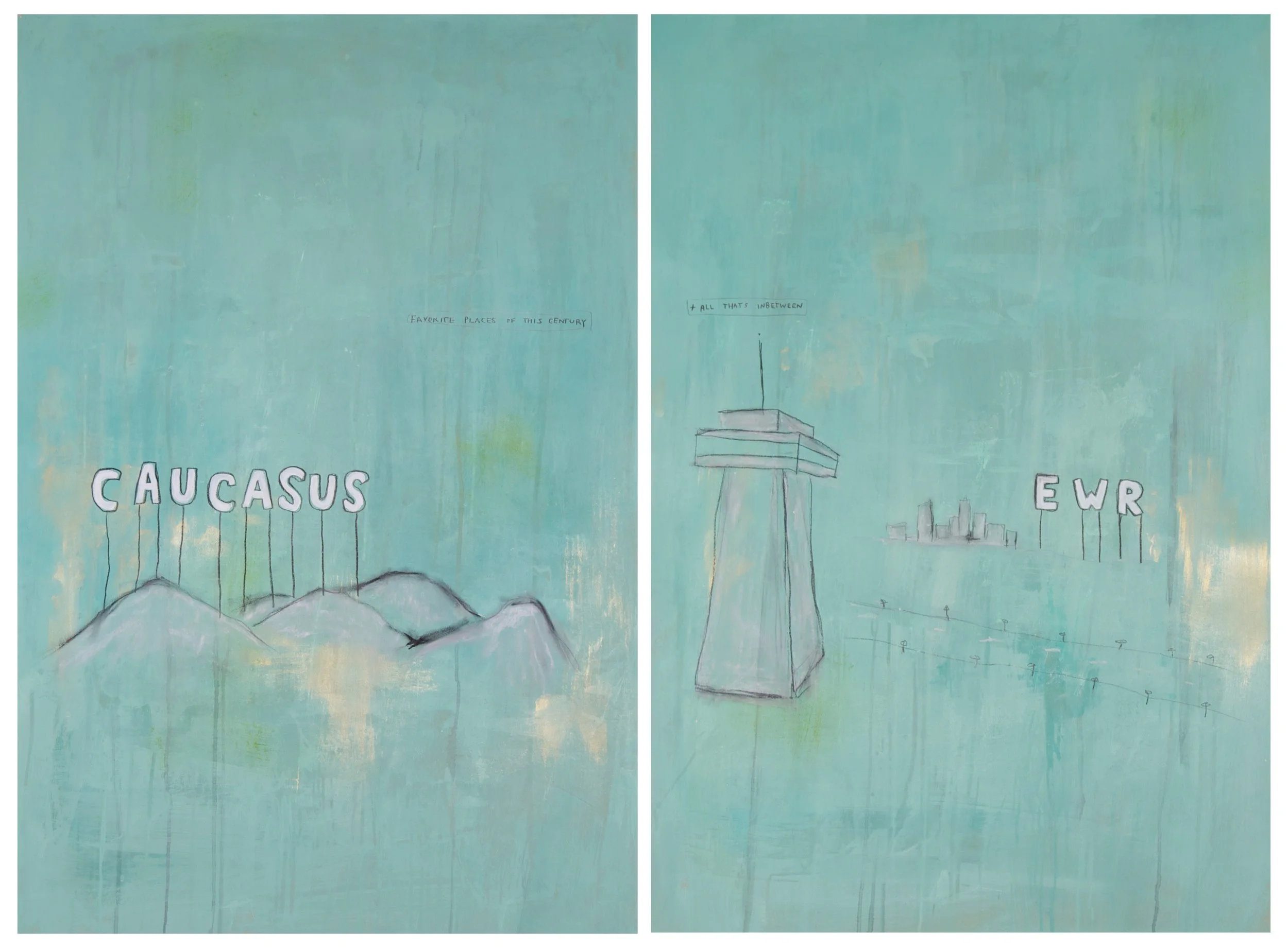 And All That's Inbetween, 2002, acrylic on paper, diptych each 40" x 29"