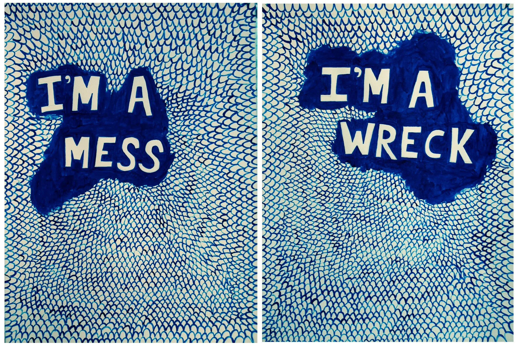 Mess Wreck, 2008, acrylic on paper, diptych, 30" x 22" each